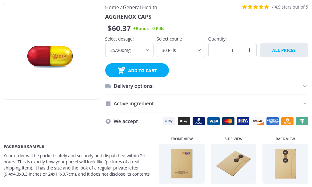 Aggrenox packs: 30 pills, 60 pills, 90 pills, 120 pills, 180 pills