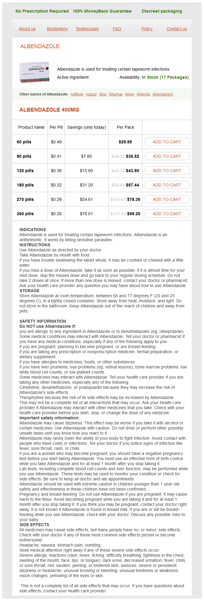 Tags: 400 mg albendazole visa, purchase 400 mg albendazole fast delivery, order 400 mg albendazole mastercard, discount albendazole 400 mg free shipping