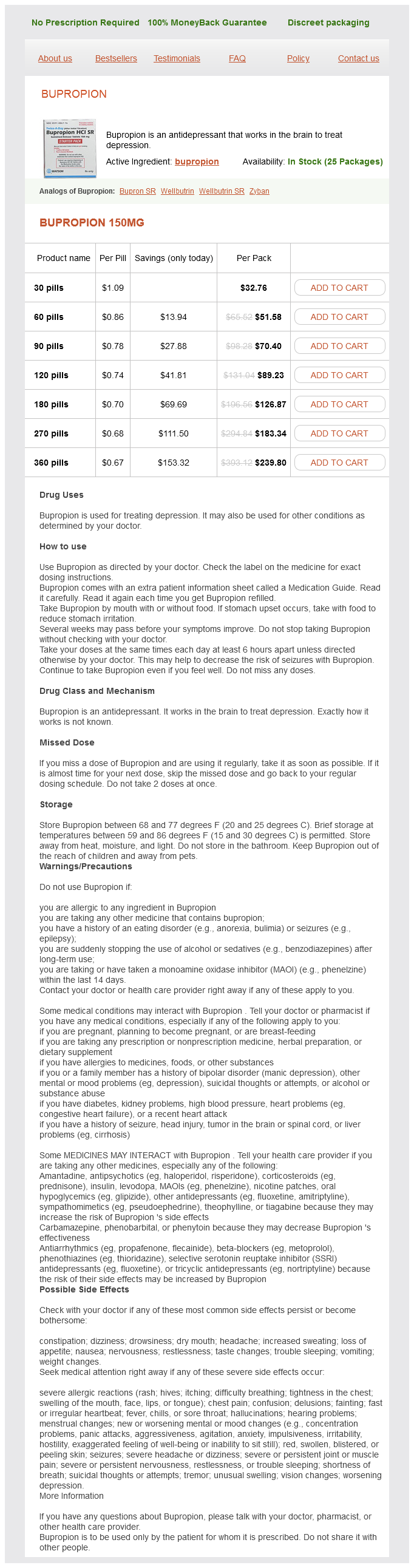 Bupropion packs: 30 pills, 60 pills, 90 pills, 120 pills, 180 pills, 270 pills, 360 pills