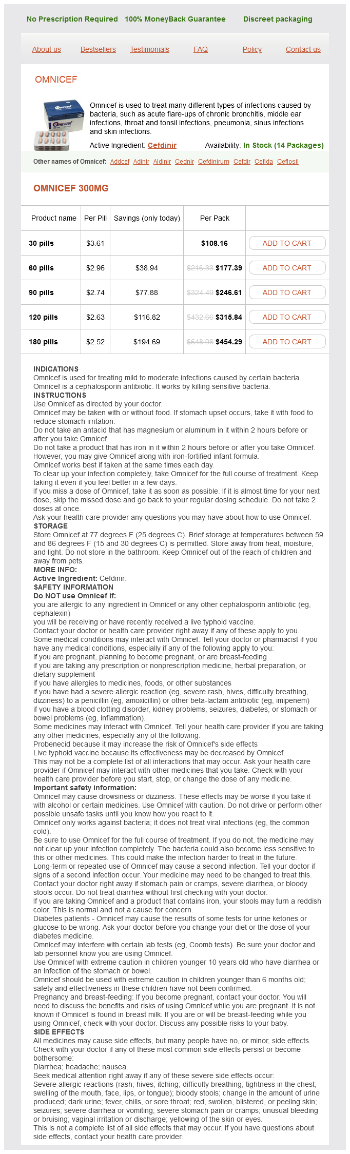 Cefdinir packs: 30 pills, 60 pills, 90 pills, 120 pills, 180 pills