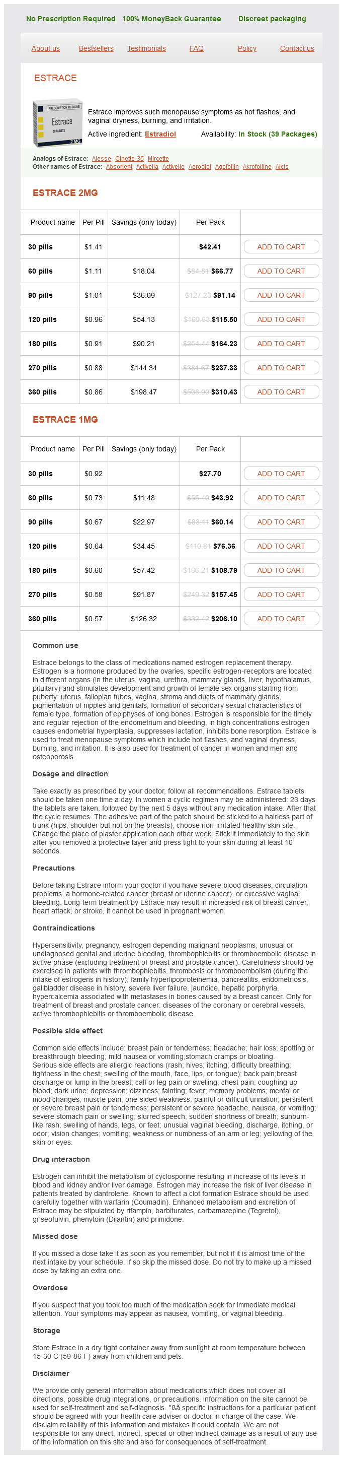 Estradiol packs: 30 pills, 60 pills, 90 pills, 120 pills, 180 pills, 270 pills, 360 pills