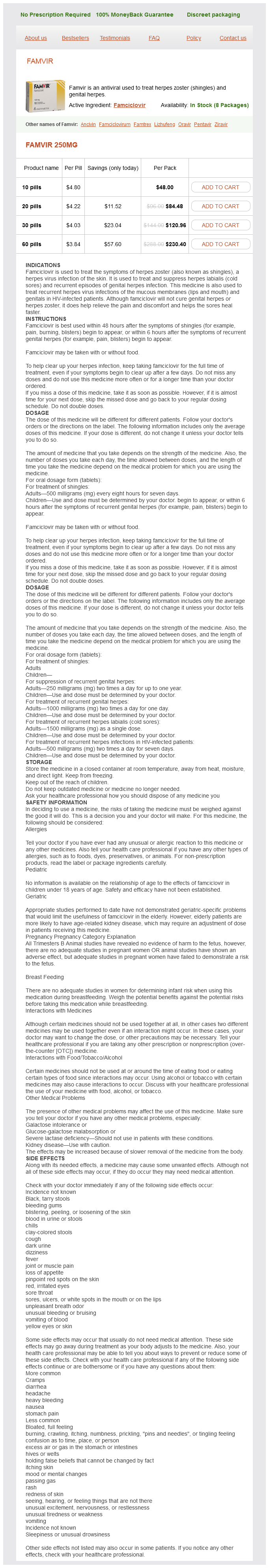 Famciclovir packs: 10 pills, 20 pills, 30 pills, 60 pills