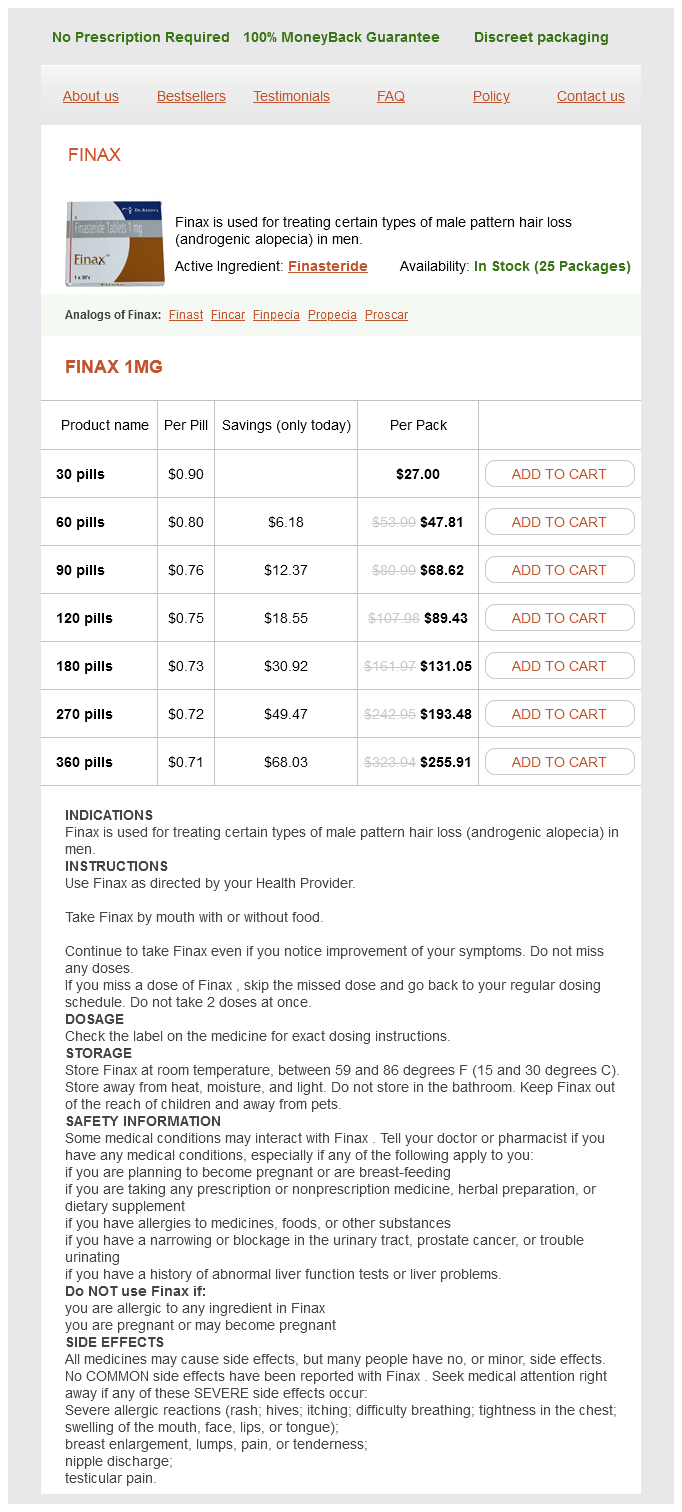 Finax packs: 30 pills, 60 pills, 90 pills, 120 pills, 180 pills, 270 pills, 360 pills