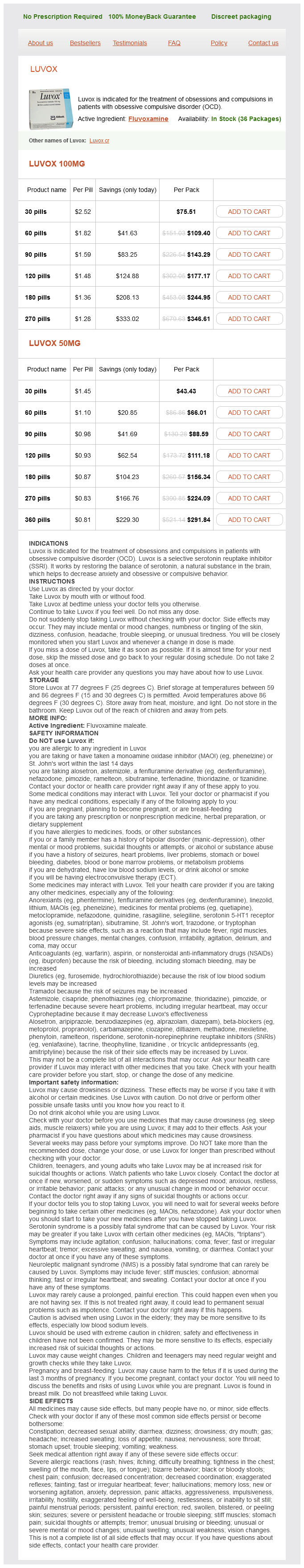 Fluvoxamine packs: 30 pills, 60 pills, 90 pills, 120 pills, 180 pills, 270 pills, 360 pills