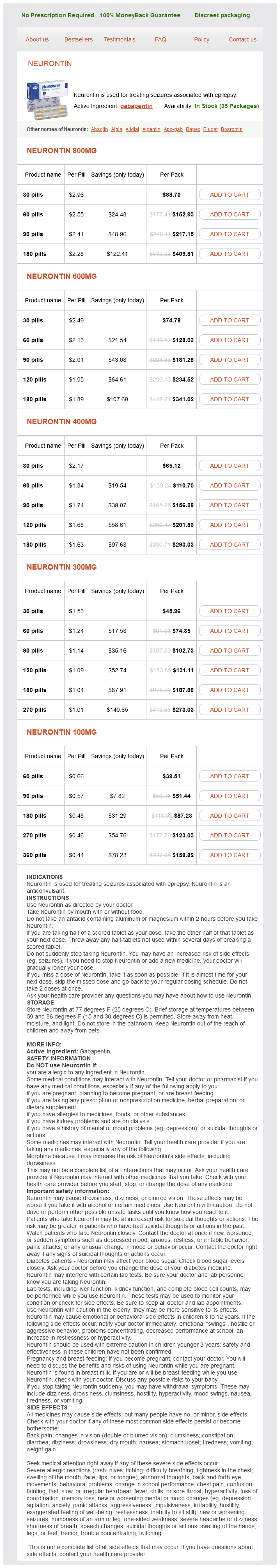 Gabapentin packs: 30 pills, 60 pills, 90 pills, 180 pills, 120 pills, 270 pills, 360 pills