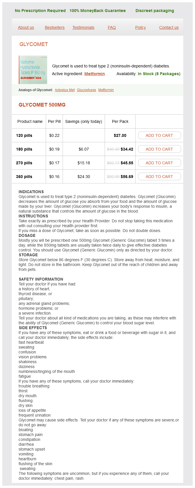 Glycomet packs: 120 pills, 180 pills, 270 pills, 360 pills