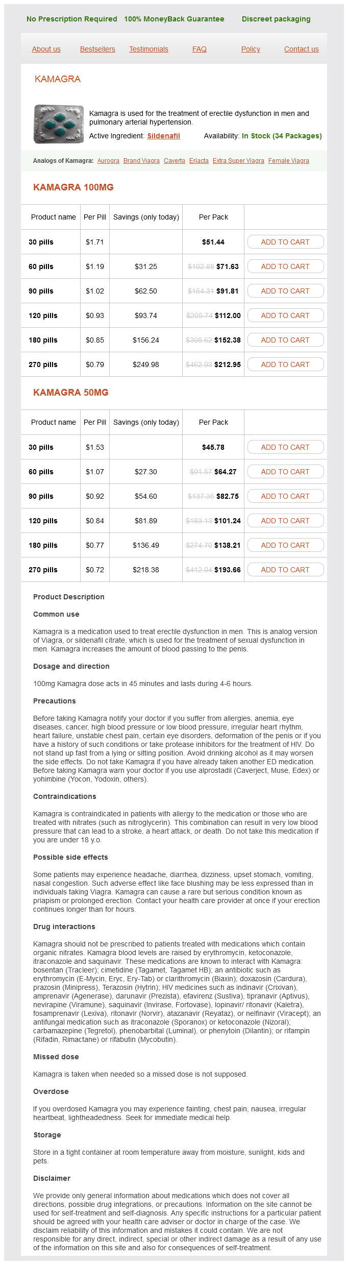 Kamagra packs: 30 pills, 60 pills, 90 pills, 120 pills, 180 pills, 270 pills