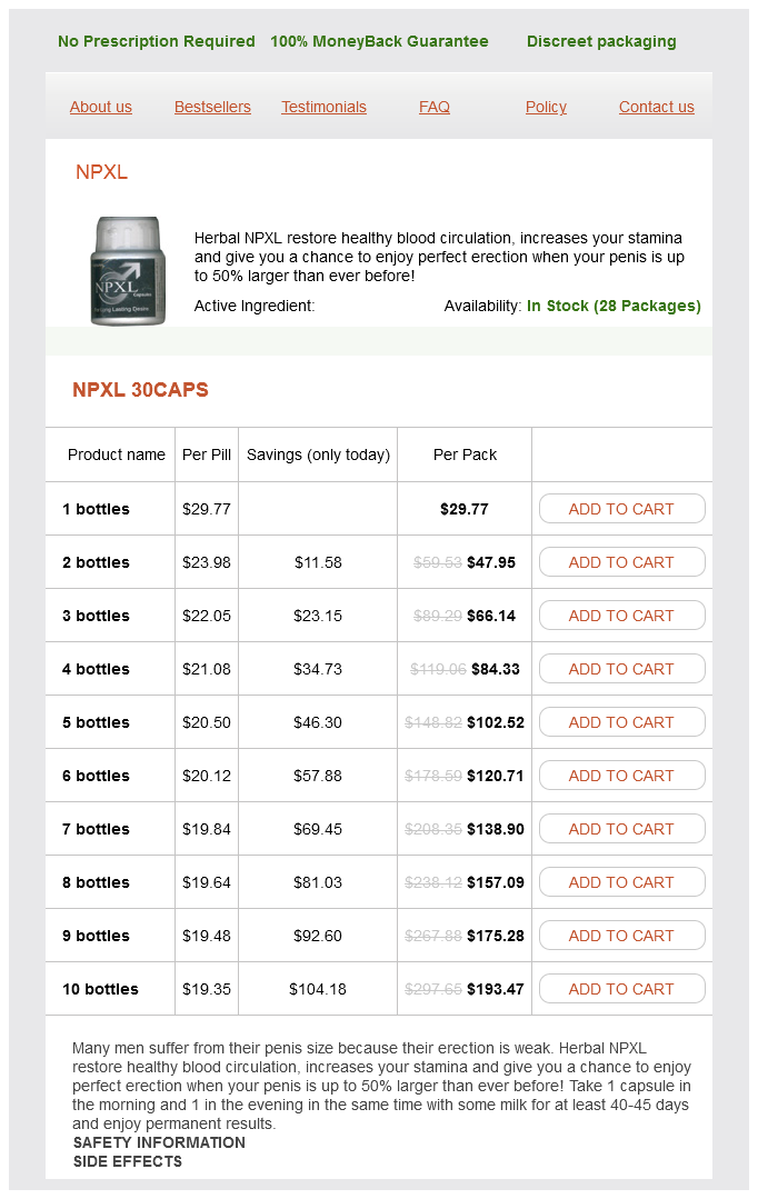 NPXL packs: 1 bottles, 2 bottles, 3 bottles, 4 bottles, 5 bottles, 6 bottles, 7 bottles, 8 bottles, 9 bottles, 10 bottles