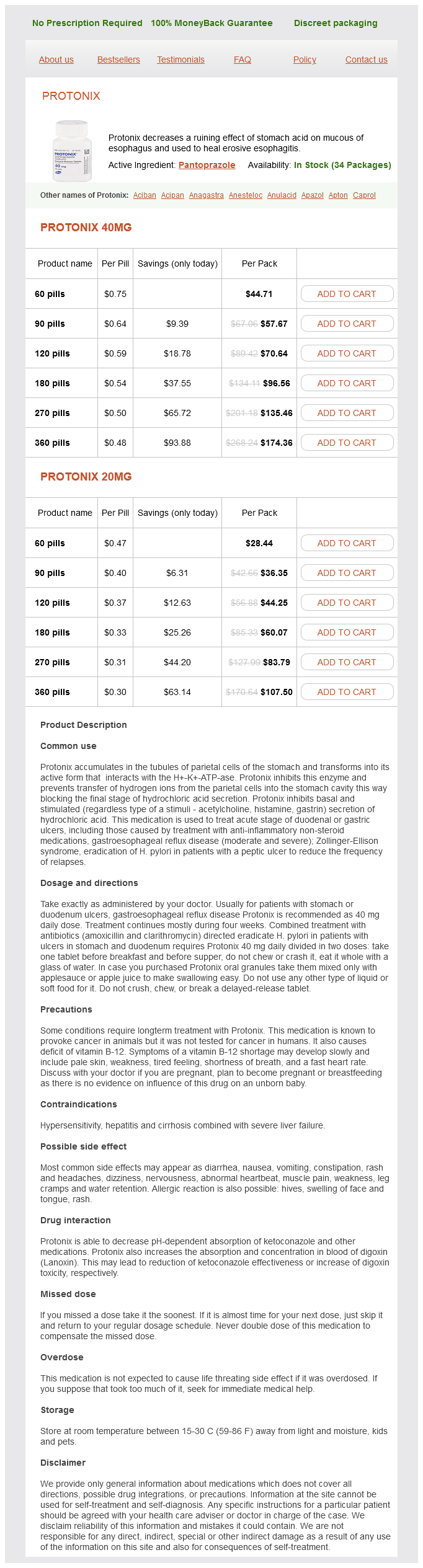 Pantoprazole packs: 60 pills, 90 pills, 120 pills, 180 pills, 270 pills, 360 pills