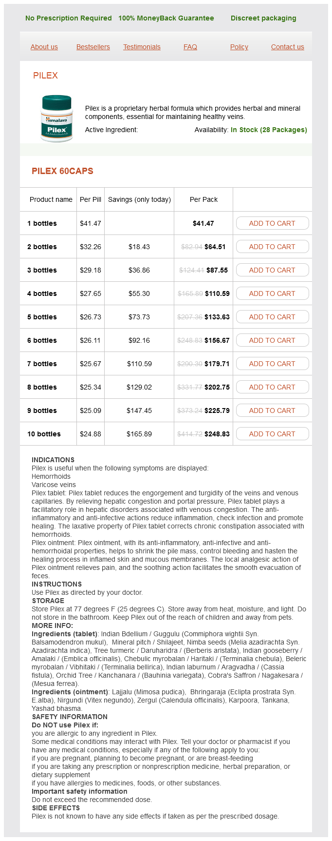 Pilex packs: 1 bottles, 2 bottles, 3 bottles, 4 bottles, 5 bottles, 6 bottles, 7 bottles, 8 bottles, 9 bottles, 10 bottles