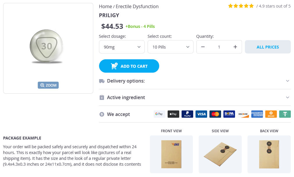 Priligy packs: 10 pills, 20 pills, 30 pills, 60 pills, 90 pills, 120 pills