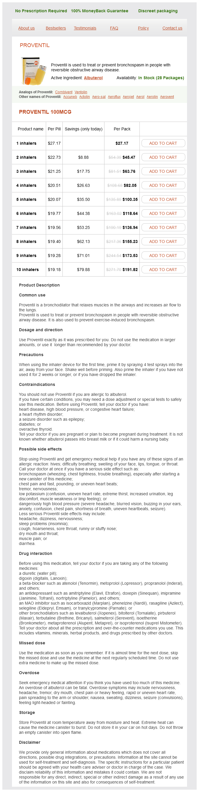 Proventil packs: 1 inhalers, 2 inhalers, 3 inhalers, 4 inhalers, 5 inhalers, 6 inhalers, 7 inhalers, 8 inhalers, 9 inhalers, 10 inhalers