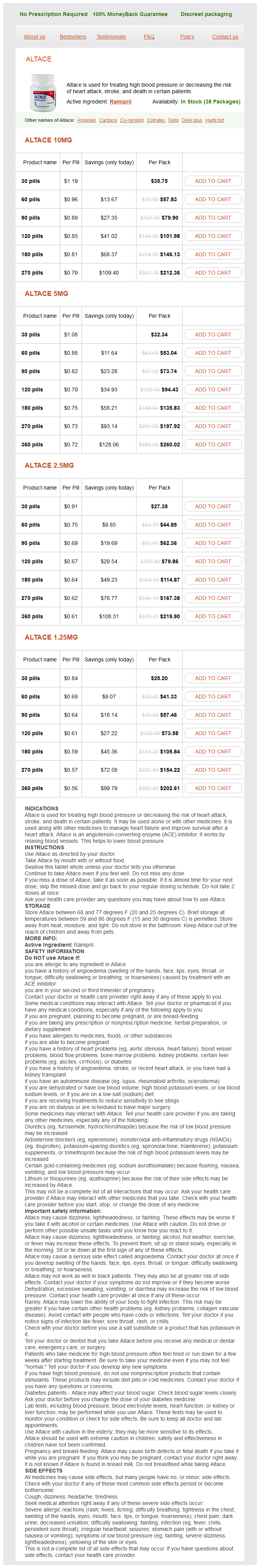 Ramipril packs: 30 pills, 60 pills, 90 pills, 120 pills, 180 pills, 270 pills, 360 pills