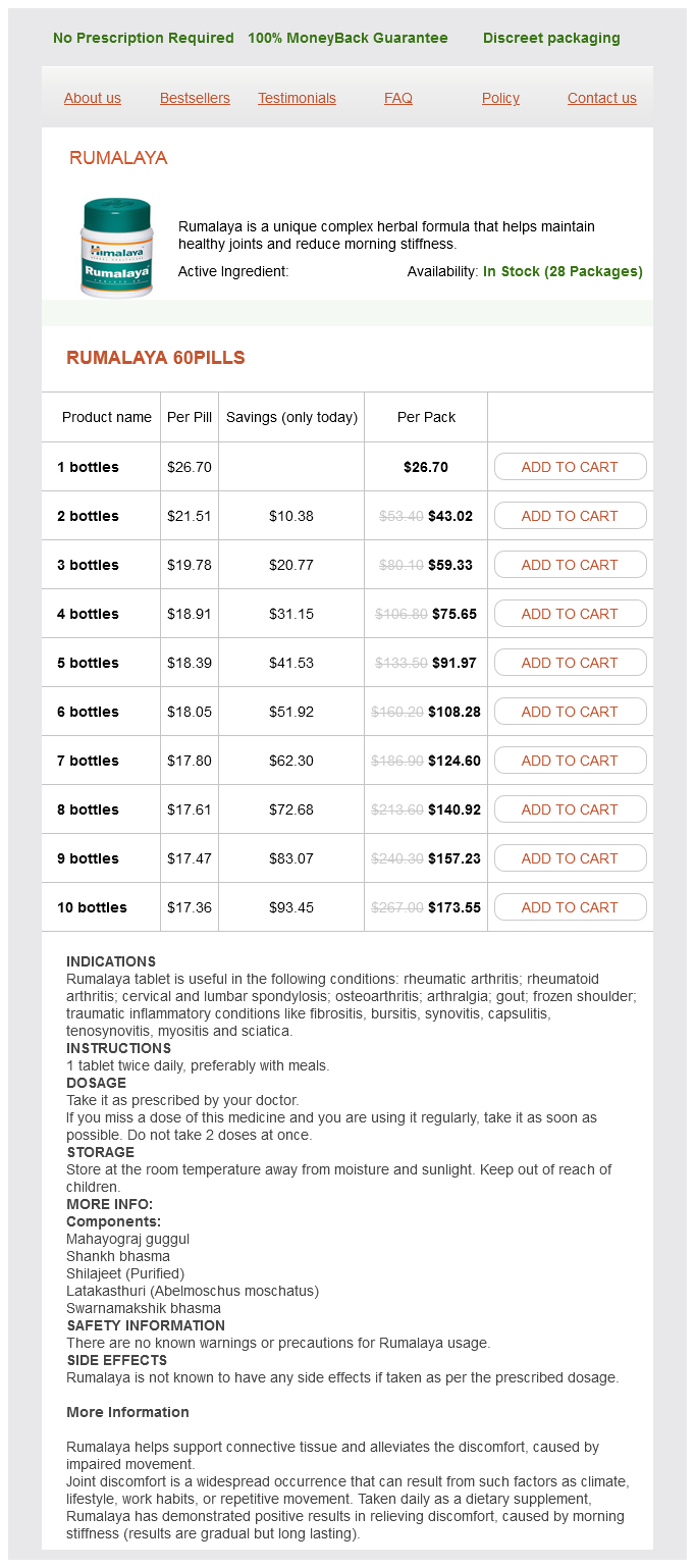 Rumalaya packs: 1 bottles, 2 bottles, 3 bottles, 4 bottles, 5 bottles, 6 bottles, 7 bottles, 8 bottles, 9 bottles, 10 bottles