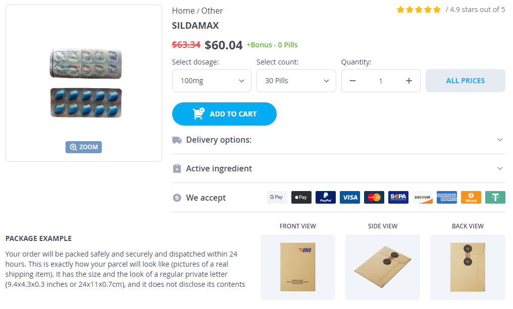 Sildamax packs: 10 pills, 20 pills, 30 pills, 50 pills, 100 pills