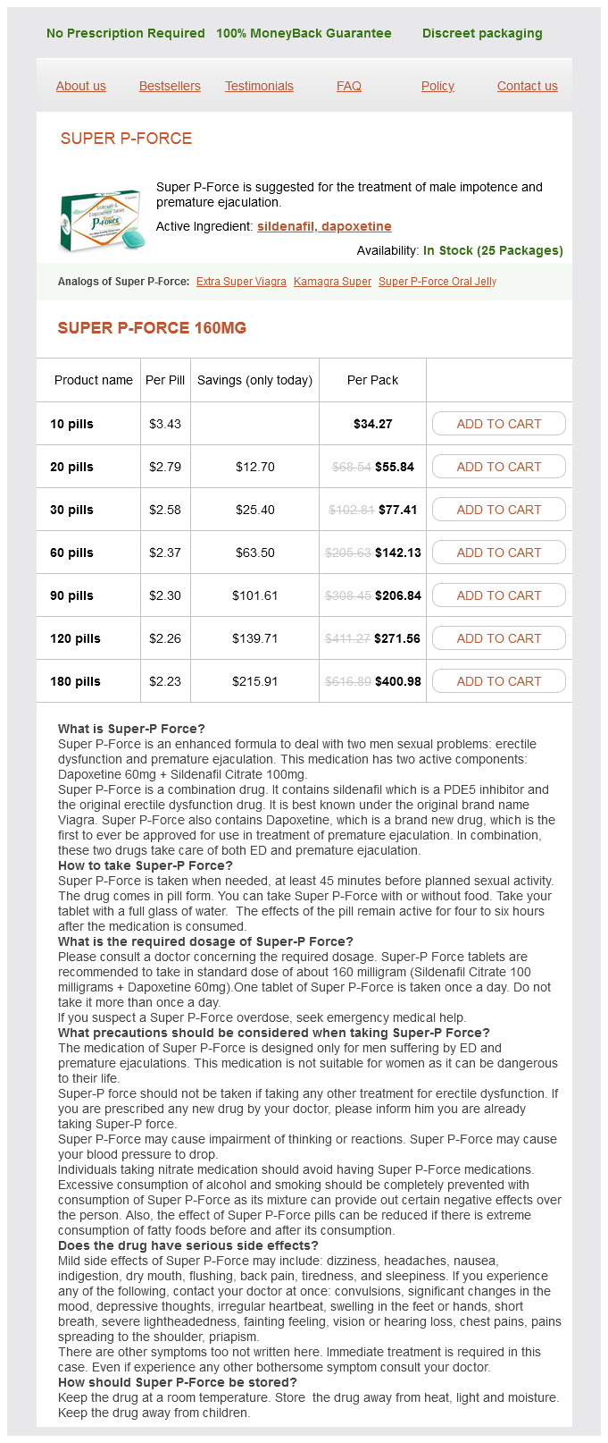 Tags: cheap 160 mg super p-force with visa, best 160 mg super p-force, discount 160 mg super p-force overnight delivery, 160 mg super p-force