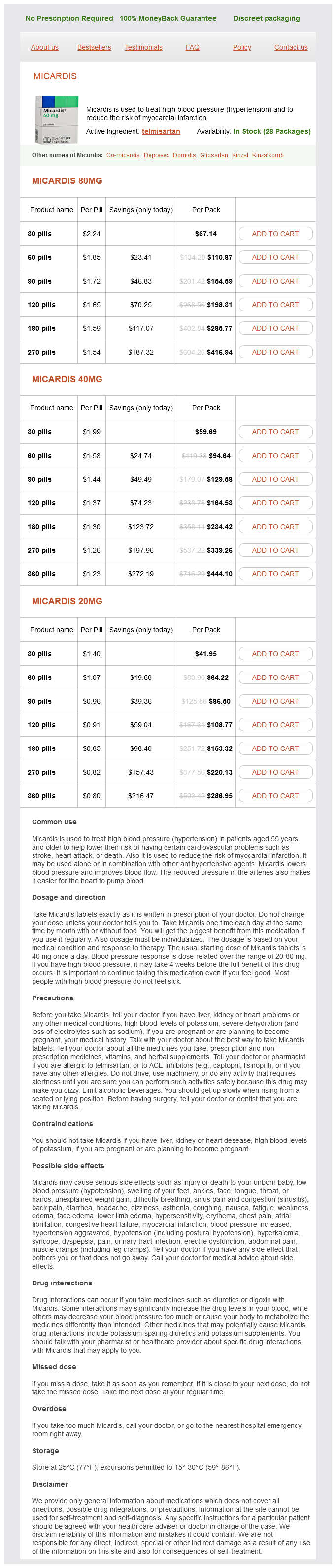 Telmisartan dosages: 80 mg, 40 mg, 20 mg