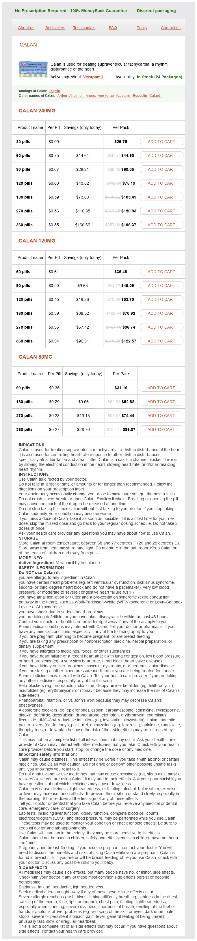 Verapamil packs: 30 pills, 60 pills, 90 pills, 120 pills, 180 pills, 270 pills, 360 pills