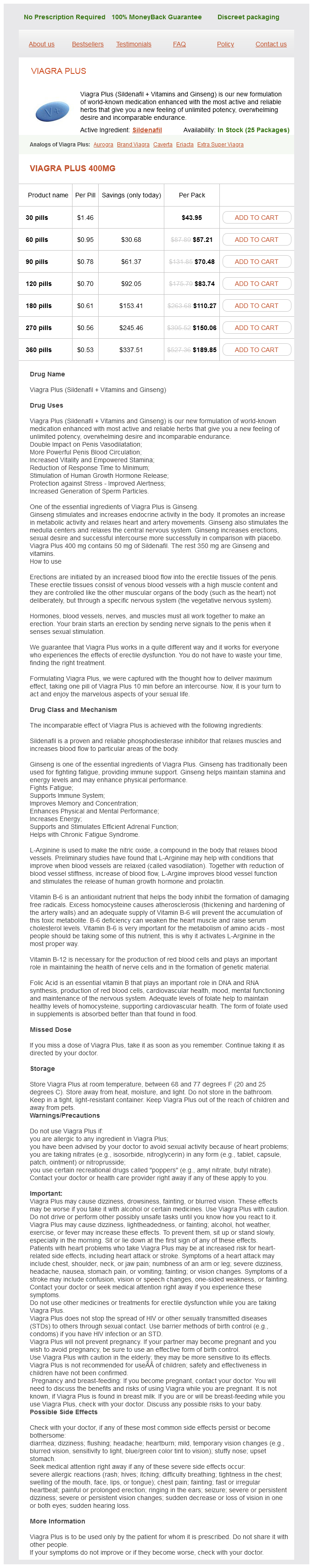 Viagra Plus packs: 30 pills, 60 pills, 90 pills, 120 pills, 180 pills, 270 pills, 360 pills