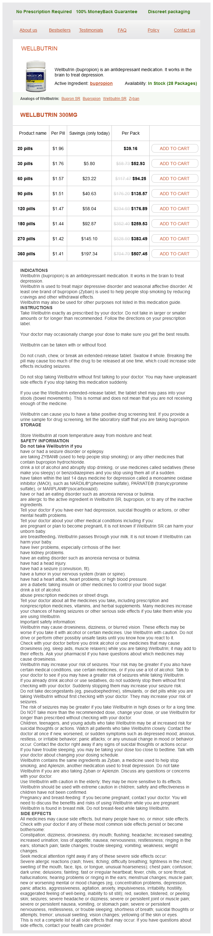 Wellbutrin packs: 20 pills, 30 pills, 60 pills, 90 pills, 120 pills, 180 pills, 270 pills, 360 pills