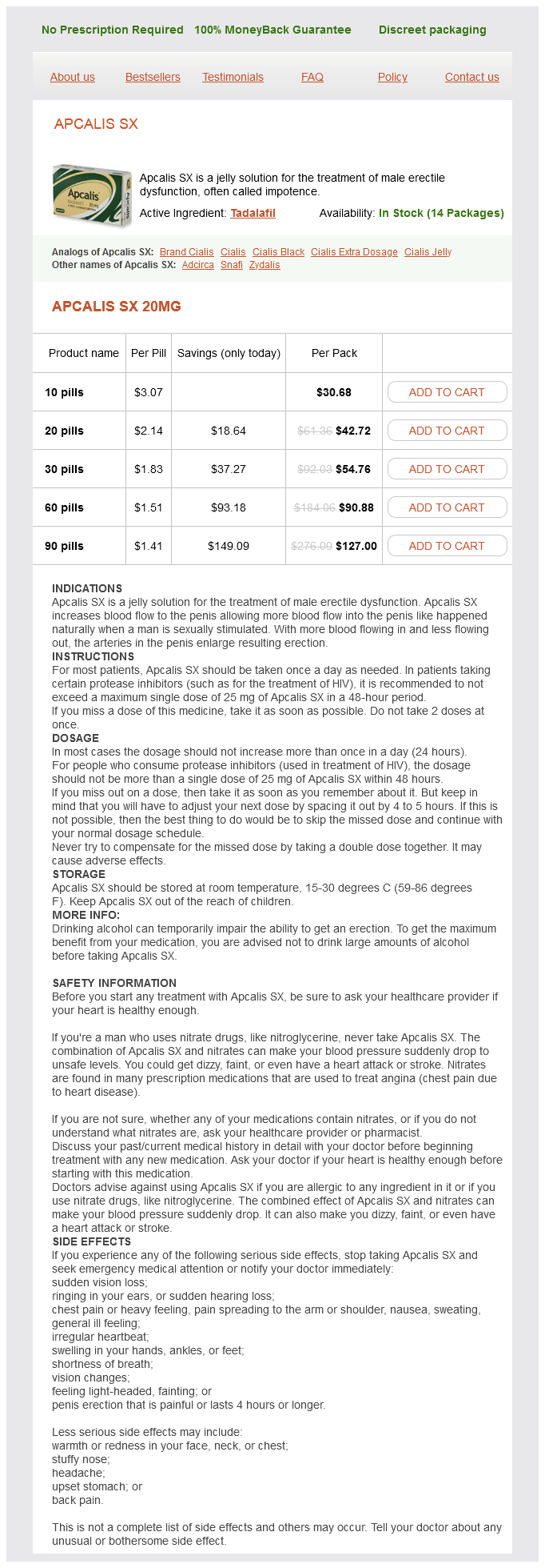 Zydalis packs: 10 pills, 20 pills, 30 pills, 60 pills, 90 pills